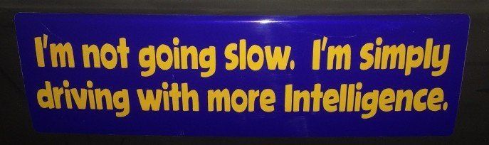 I used to only drive 10,000 miles a year. Now I drive 10,000 miles in 5 months. Oops! Well at least most of those miles are solar powered. Admittedly this bumper sticker (below), is not as applicable as it once was.