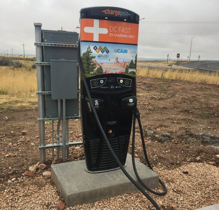 A Rapid charging station added in 2017 at Filmore, UT. This makes long-distant travel in an electric car convenient.