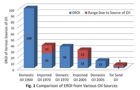 Today most of our gasoline comes from these very dirty, energy demanding sources. Unlike the 100x energy ROI of the long gone "easy" oil, for today's oil, for every unit of energy in, only 2 to 3 units of fuel energy are returned.