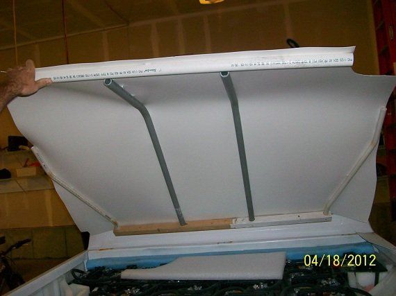 Here is a picture of the new bed cover that I made out of PVC pipe and a sheet of shower shell plastic.