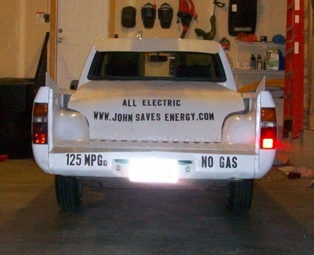 I had some extra triangle shaped plastic left over so I slapped it on the back, making some really cool tail fins. My kids now call the truck the "White Rocket".