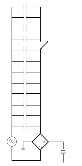 A capacitive battery charger could theoretically charge up a bank of lead-