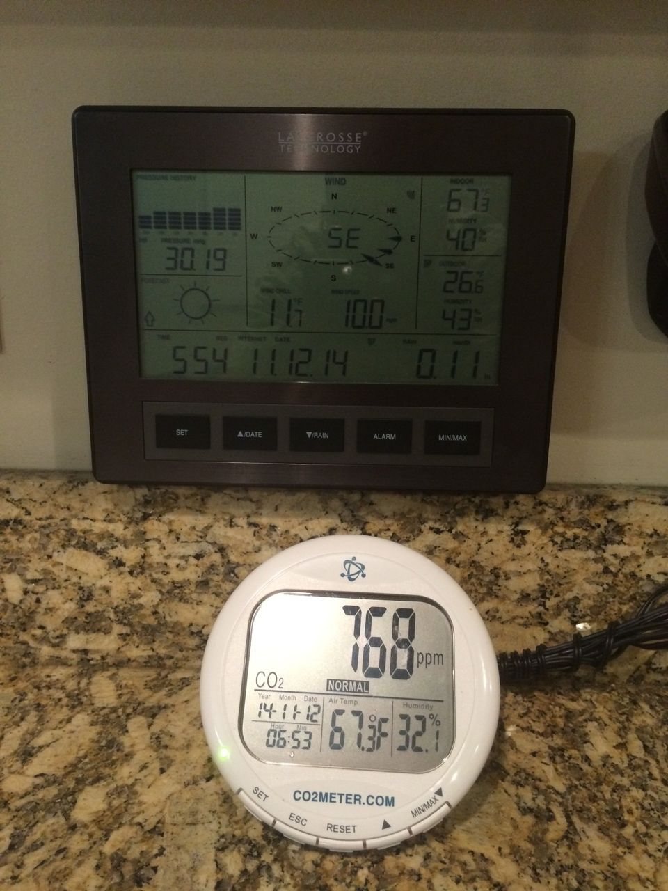 A typical CO2 reading of 768 ppm (parts per million) inside our home.