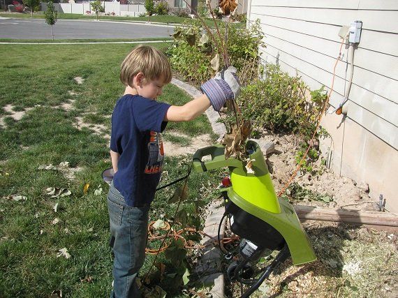 We got a small electric wood chipper and it works just fine. No hassle messing with smelly gasoline/oil mixtures and spending hours trying to start a smoky, greasy, finicky engine. Just plug it in and flip the switch. How cool is that? And since the solar panels on the house roof provide nearly all our electricity, this makes the wood chipper effectively solar powered too.