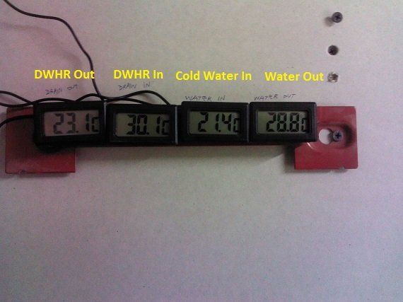 See the table below (data collected on 1/18/2014) for some examples of heat recovery (during a 1.5 gallon/minute shower) through the DWHR unit.