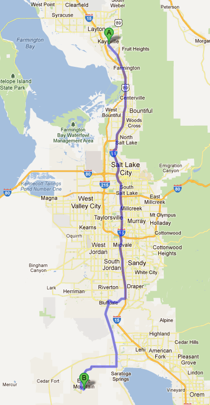 A week after the Antelope Island experiment, I set out for an extreme all electric one-way trip to Ben’s house in Eagle mountain, UT. On Google maps, it’s a 57 mile one way journey.