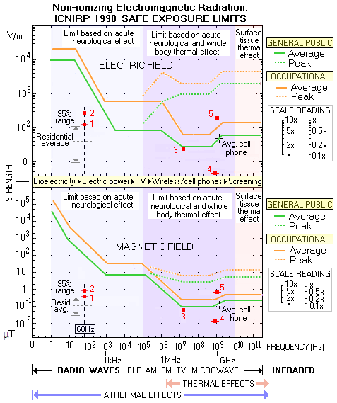 The FCC has published a safe exposure limits chart for electromagnetic radiation in the radio spectrum.