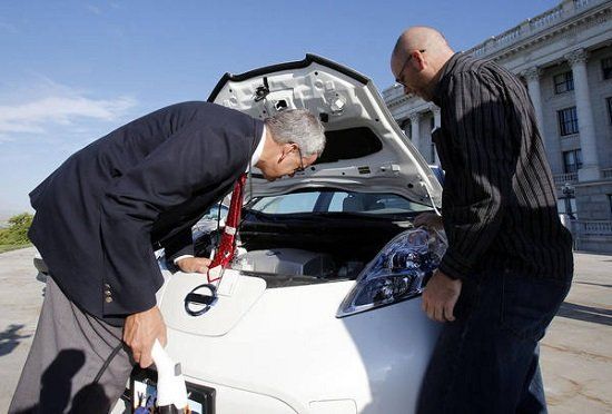 John Loveless showing Rep Ed Redd the motor/controller in the Leaf.
