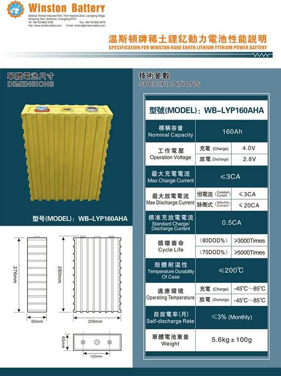 160 Ah Winston LiFePO4 battery cells x24