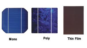 There are three main types of panels. Mono-crystalline and Poly-crystalline and Thin Film.