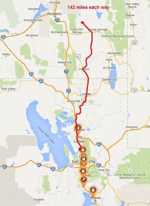 Recently she even took her Juicebox with her in the Leaf for a 284 mile road trip to Bancroft, ID. Here in the oil and gas-obsessed badlands of Utah and Idaho, rapid charging stations are a rare site indeed.