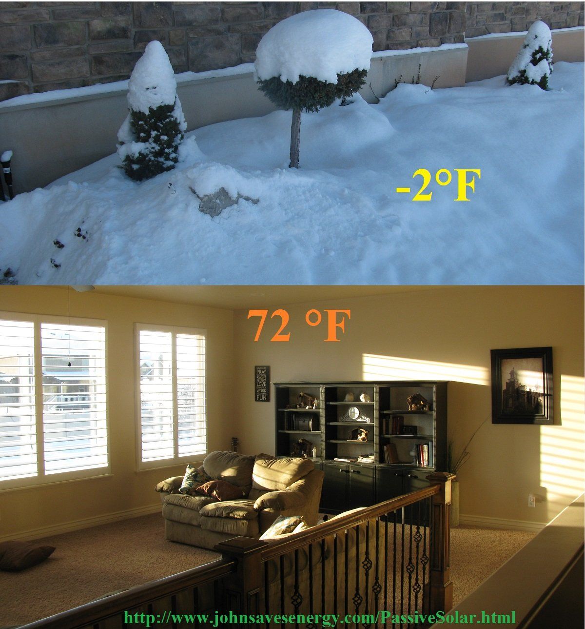 Even though it was 11°F outside, it was a toasty, passively heated 74 degrees inside our house.