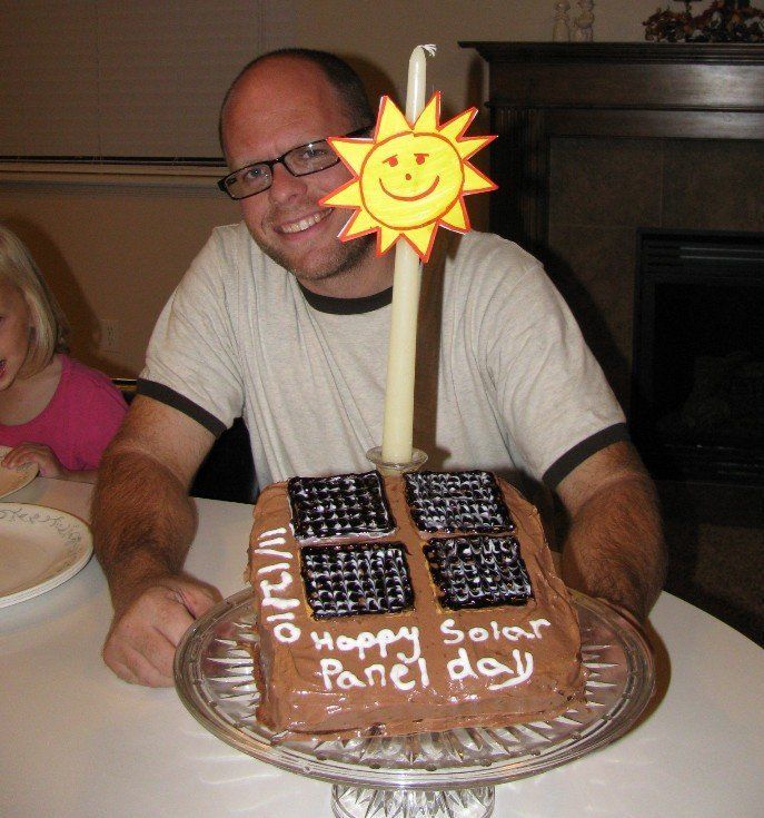 To celebrate the first day our solar array back-fed power to the electric grid, Cheryl made a solar array cake.