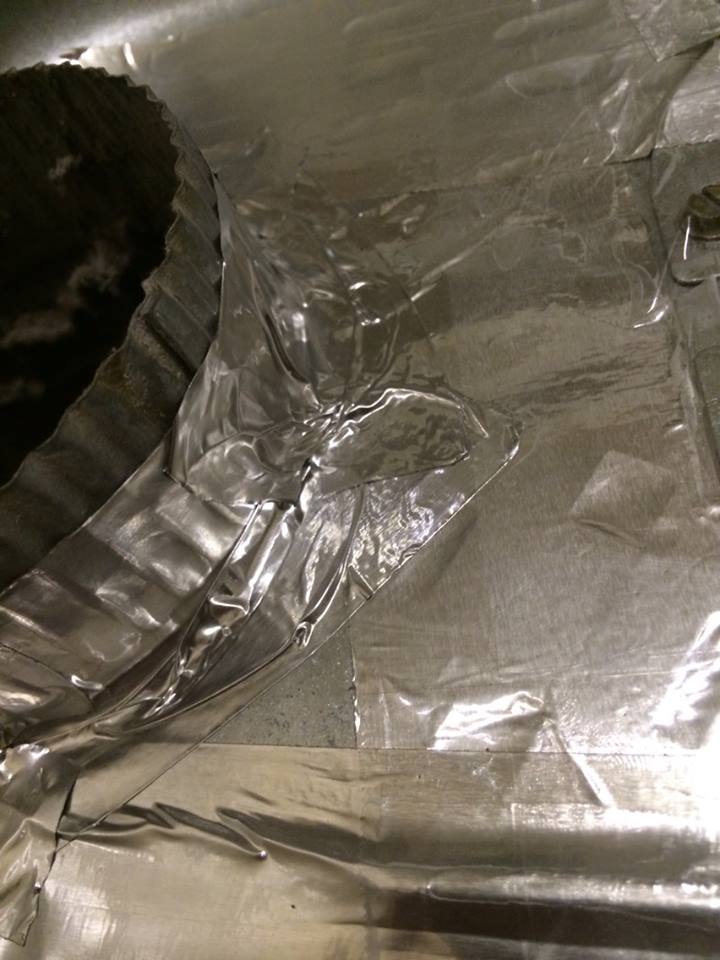 So the blower motor could better draft in its own air from the attic, I sealed off all the seams and vent holes in the clothes dryer (except for the exhaust hole).