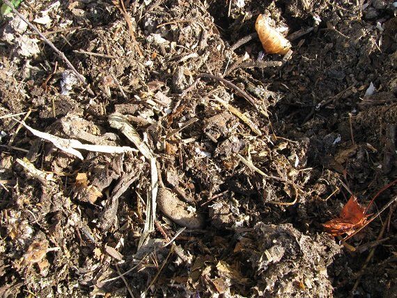 Eventually the greens and browns turn into super rich compost. This compost shown above isn't quite ready yet because we originally added too large of pieces of browns, but it's getting close.